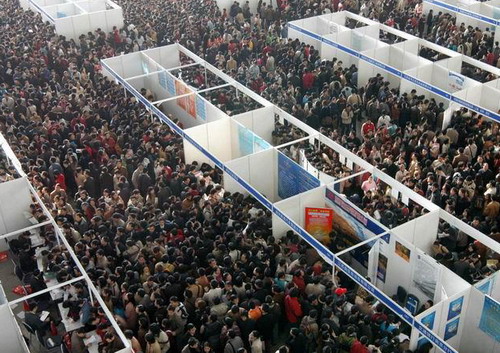 相對往年景象,今年招聘現(xiàn)場氣氛之熱烈是筆者所沒有想到的。招聘會從早上8點開始,一直到下午的3點,現(xiàn)場還是“人山人海”,雖然有的崗位只招2人,卻有四五十人排隊應聘,每家企業(yè)都收到簡歷100多份,多者甚至有幾百份。據(jù)企業(yè)代表反映,現(xiàn)在的大學生就業(yè)心態(tài)普遍平和,甚至有不少學生表示,只要有工作,做什么都可以。