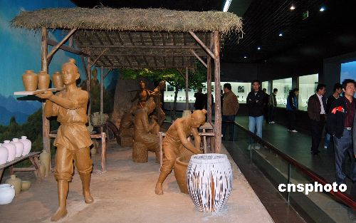 圖為展區(qū)里生動再現(xiàn)了宋代民間制陶的方法。