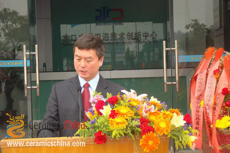 。ū揪W(wǎng)訊 主編 蘇振明 特約記者 洪秀明 攝影報(bào)道)12月5日下午三時(shí),水口水暖衛(wèi)浴技術(shù)創(chuàng)新中心彩旗飄揚(yáng)、鑼鼓喧天,一派節(jié)日氣氛。開平市人民政府和水口鎮(zhèn)人民政府聯(lián)合舉行水口水暖衛(wèi)浴技術(shù)創(chuàng)新中心舉行落成揭幕儀式。出席揭幕儀式的領(lǐng)導(dǎo)和嘉賓有:中國(guó)建筑衛(wèi)生陶瓷協(xié)會(huì)會(huì)長(zhǎng)丁衛(wèi)東、秘書長(zhǎng)繆斌,廣東省科技廳發(fā)展計(jì)劃處處長(zhǎng)姚化榮,江門市科技局副局長(zhǎng)李健群以及開平市市長(zhǎng)吳平超,市人大副主任司徒堯滾,常務(wù)副市長(zhǎng)梁和,、副市長(zhǎng)陳靖,市政協(xié)副主席杜海英,水口鎮(zhèn)領(lǐng)導(dǎo)班子成員等。