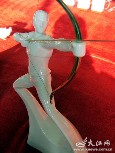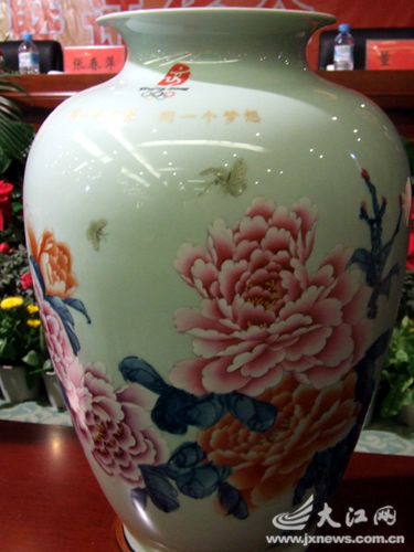 記者在現(xiàn)場看到,一組雕塑類瓷器把各個(gè)體育比賽項(xiàng)目中的運(yùn)動員所表現(xiàn)的力和美完美地進(jìn)行了表現(xiàn)。據(jù)生產(chǎn)方介紹,此次他們共用陶瓷打造了29款運(yùn)動造型雕塑,這是世界上首次如此全面的用陶瓷之美來展現(xiàn)運(yùn)動之美,這也是景德鎮(zhèn)人獻(xiàn)給奧林匹克運(yùn)動的一份獨(dú)特禮物。而一只由景德鎮(zhèn)陶瓷藝術(shù)家制作的名為《圓夢》的陶瓷花瓶,則采用寓意的手法,用10朵盛開的牡丹表達(dá)了中國人民決心要把第29屆奧運(yùn)會辦得十全十美、圓滿成功的美好愿望。其美麗的畫面、獨(dú)特的設(shè)計(jì)引得與會的奧組委官員與零售商紛紛搶著與其合影。