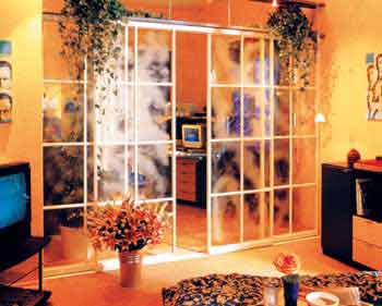 這個小茶室采用現(xiàn)在很流行的和室設(shè)計,方幾、方墊、綠竹、插花搭配在一起,形成很溫馨的女性空間。為保持環(huán)境的通透與女主人對陽光的追求,設(shè)計師利用了天井上方全透明的玻璃屋頂,在樓梯一側(cè)設(shè)計了大大的幾何圖形鏤空造型,這些都保證了這一方和室的光線。