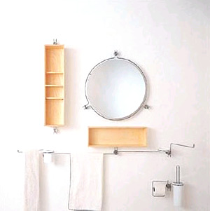 浴室空間中,有些經(jīng)常要用到的物品,例如毛巾、牙刷等,不可能放在柜子里面,勢必要掛在外部空間方便拿取的位置?梢杂糜诜胖眠@些常用物品的工具有橫桿、擱架、籃筐等。
