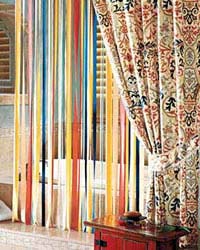 這樣的浴簾,指望它能夠擋住四下紛飛的水滴顯然是不現(xiàn)實(shí)的,因此如果在家里掛這樣一幅浴簾,你最好有享受泡泡浴的好心情。彩虹浴簾的作用更在于美化你的衛(wèi)生間,不論你有沒(méi)有躺在浴缸里發(fā)呆,它都會(huì)給你帶來(lái)非常好的視覺(jué)效果。當(dāng)然為了增加洗澡的私密性,需要在條狀的浴簾外再加一道密不透風(fēng)的簾子,不但有了實(shí)際功能,還能產(chǎn)生層次感。