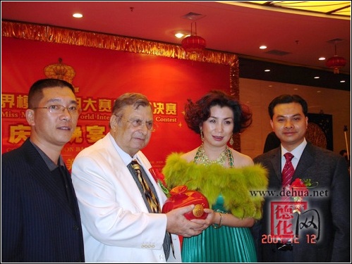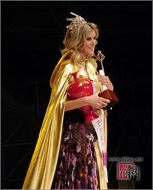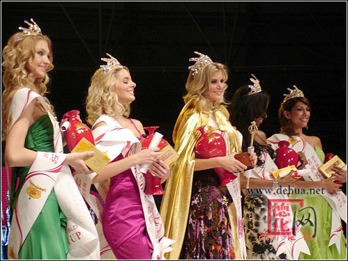 據(jù)世界模特大賽國(guó)際組織機(jī)構(gòu)執(zhí)行主席、第十九屆世界模特小姐大賽國(guó)際總決賽執(zhí)委會(huì)主席安娜小姐介紹說(shuō),選擇中國(guó)德化的富貴紅瓷瓶作為大賽唯一指定獎(jiǎng)杯有著特殊的意義,突破了以往很多國(guó)際選美賽事使用水晶作為獎(jiǎng)杯的傳統(tǒng)習(xí)慣,能選擇富貴紅這樣一個(gè)標(biāo)志中國(guó)文化的一個(gè)獎(jiǎng)杯作為獎(jiǎng)杯,讓她感覺(jué)特別的貼切,用能代表中國(guó)文化的富貴紅產(chǎn)品作為獎(jiǎng)杯,在選美賽事里面這應(yīng)該是唯獨(dú)的一個(gè),很另類的一個(gè)獎(jiǎng)杯。中國(guó)最吉祥的顏色是紅色,富貴紅它的名字也就是說(shuō)人的生活榮華富貴,選擇它,因?yàn)槭滥L刭愒谥袊?guó)舉辦,就想有中國(guó)特色的獎(jiǎng)杯,作為一個(gè)代表、象征,在此之前,已連續(xù)兩屆選擇富貴紅瓷瓶作為大賽獎(jiǎng)品,得到了組委會(huì)的認(rèn)同和獲獎(jiǎng)佳麗的青睞。安娜表示,今后還要將德化的富貴紅瓷作為世模大賽永久性獎(jiǎng)品,使得德化名瓷與世模大賽相得益彰,紅紅遍全世界。