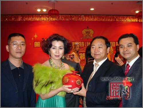 五洲模特盈,T臺(tái)冠冕晉;窯寶授佳麗,瓷都揚(yáng)名聲。第十七、十八屆世模小姐大賽指定獎(jiǎng)品,第九屆外交部對(duì)外友好和平聯(lián)誼會(huì)贈(zèng)送外國(guó)使節(jié)禮品,“9·8”中國(guó)國(guó)際投資貿(mào)易洽談會(huì)組委會(huì)指定貴賓禮品,福建省委贈(zèng)給菲律賓總統(tǒng)阿羅約的外事禮品——富貴紅高溫紅釉藝術(shù)瓷,被在山西運(yùn)城第19屆世界模特小姐大賽國(guó)際總決賽選定大賽唯一指定獎(jiǎng)杯和貴賓禮品,頒發(fā)給第十九屆世界模特大賽獲獎(jiǎng)佳麗,這是富貴紅“青春麗人”紅釉瓷瓶連續(xù)三屆成為國(guó)際頂級(jí)選美賽事指定獎(jiǎng)杯。