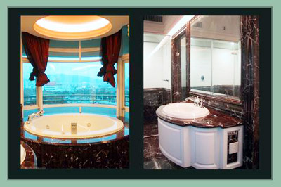 要營造一種舒適的沐浴環(huán)境需要考慮很多因素。在整體設(shè)計(jì)上,要設(shè)想好各類潔具的擺放位置,地面、墻面、家具的色彩和材質(zhì)的協(xié)調(diào),包括光源的設(shè)置;在使用上,還要考慮在周邊配置好適當(dāng)?shù)挠布,例如衣架、小浴柜等;在情調(diào)上,陽光、通風(fēng)、外界環(huán)境的介入等需要仔細(xì)斟酌。