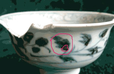 2、凝聚斑是青花繪畫中鈷料和雜質(zhì)濃縮的部分,即下滲入胎骨,又上滲入釉中,活動(dòng)性最強(qiáng)。