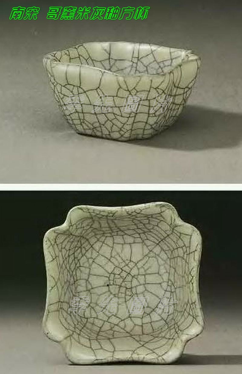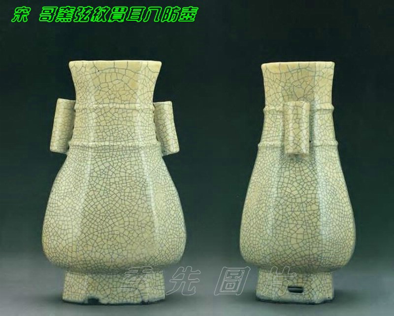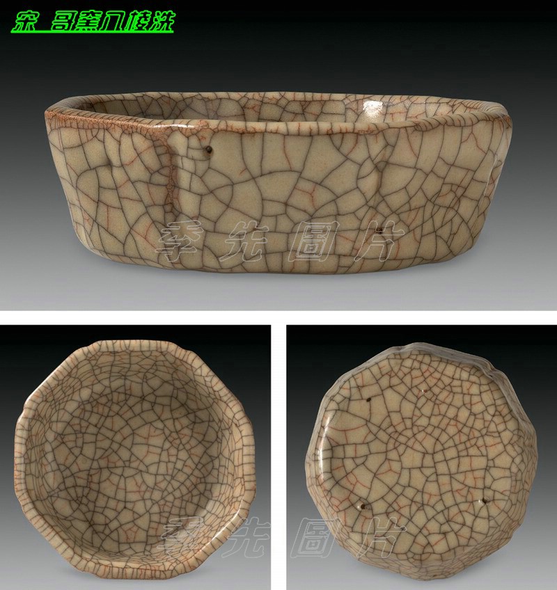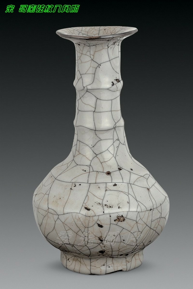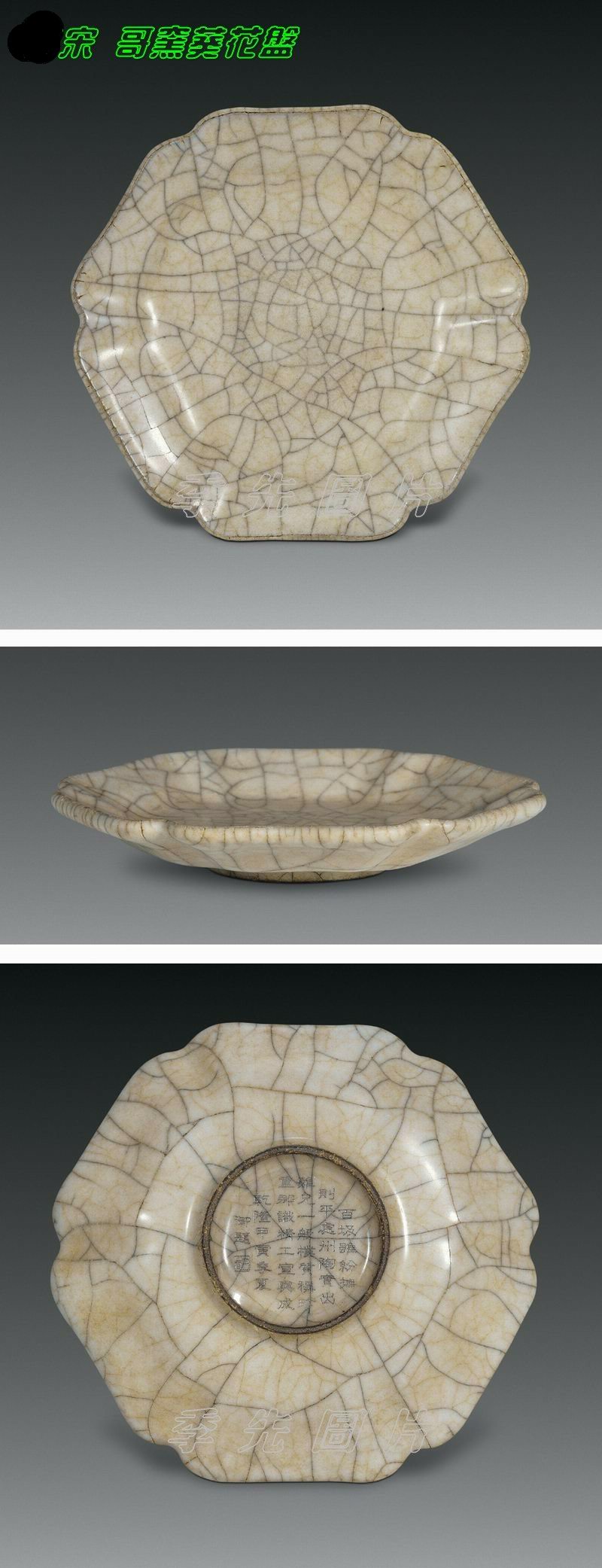宋元哥窯的基本特征是(1)黑胎;(2)紫口鐵足;(3)金絲鐵線;(4)宋代器型;(5)氣泡之密似攢珠;(6)釉為失透的乳濁釉,釉色為粉青、月白、灰青、青黃多種。