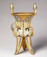 如商代象蓋 饕餮紋銅觥:器通高17.7厘米,由器身、足與蓋所組成。蓋面飾有饕餮紋,以細(xì)云雷紋襯底。器物的腹部饕餮飾紋。動物紋樣具有宗教意義。商代時期的各類鼎上,均有饕餮紋飾樣,鼎是先民用來祭祀的最常見而神秘的器皿,其宗教意義濃厚。