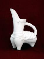 白陶是以瓷土和高嶺土為原料,在1200度左右的溫度中燒成的陶器,由于胎質(zhì)中所含氧化鐵比例極低,大約只有1.6%,因此燒成后表里和胎質(zhì)都呈白色。