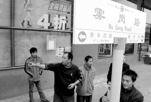 “霧崗路”上的陶瓷路牌。(本報記者鄧活生攝)