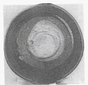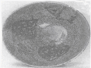 晚期仿品吸取以往經(jīng)驗(yàn),有埋人土中“過蝕”、在成品上涂膠過火仿土銹制造假象者。土銹靠膠粘附,干燥時無異樣反應(yīng),但見水易化,甚至脫落,用手指沾水,哪怕沾點(diǎn)唾沫涂于銹面,手指沾有土色者為人為土銹。