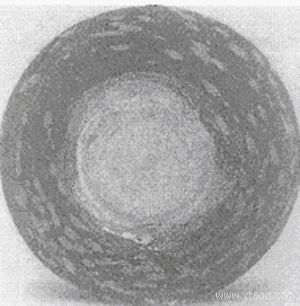 現(xiàn)代吉州窯仿制品,多采用淘洗好了的現(xiàn)成高嶺土,且在封閉的室內(nèi)制作,砂粒無從混人,人為摻和又極難把握比率,難使勻和。因而胎質(zhì)堅(jiān)密,不含砂,色澤偏白,不存在胎表因砂粒引起的阻刀、跳刀現(xiàn)象,更不存在因此而留下的豎條形的起伏觸感和豎條狀的釉面掛附不勻等釉層肌理現(xiàn)象。