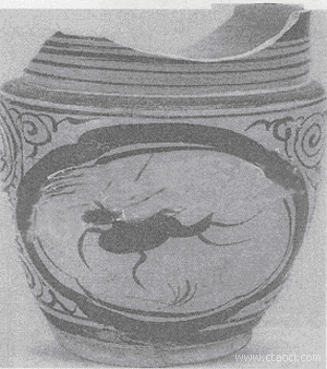吉州窯彩繪瓷脫胎于磁州窯,磁州窯胎質(zhì)偏黑灰,不得不在坯胎上先施一層淡色化妝土,然后再繪黑彩,以求色彩和諧。永和窯胎質(zhì)白中泛黃,黑色釉與胎色反差過于強(qiáng)烈,顯得生硬,不受人們歡迎。而直接在坯胎上著褐彩釉,自然、和諧、古樸的特征顯而易見,且省工料,這就是吉州窯彩繪瓷絕大多數(shù)為褐彩的原因。