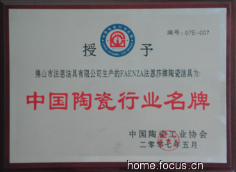 而日前,在?谂e行的中國陶瓷工業(yè)協(xié)會第五次代表大會上,法恩莎衛(wèi)浴也榮膺“中國陶瓷行業(yè)名牌”榮譽稱號。法恩莎衛(wèi)浴此次榮獲“中國陶瓷行業(yè)名牌”和再次入選“政府強制采購清單”不僅充分彰顯了法恩莎衛(wèi)浴在創(chuàng)新、節(jié)能環(huán)保等方面所表現(xiàn)出來的卓著實力,也為建陶衛(wèi)浴行業(yè)為建設節(jié)約型社會為己任起到了良好的促進作用。
