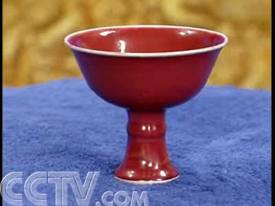毛曉滬:現(xiàn)在呢就是目前呢,我根據(jù)我們傳統(tǒng)鑒定經(jīng)驗看,從那個胎質(zhì)釉質(zhì)。包括青花的款識還有它的造型,以及它的紅的顏色上,可以說呢,沒有看出明顯的造假的破綻。那么呢最好呢還是用儀器再做進(jìn)一步的檢測。如果各方面都沒有問題的話,那么這是一只非常,就是一只,非常名貴的明代宣德的寶石紅釉高足杯。