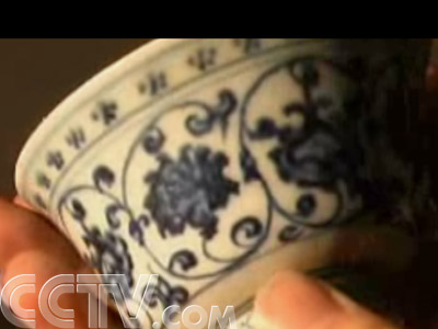 主持人:哎 怎么樣,個頭雖小,來頭去不小,這就是一個仿的明代永樂青花壓手杯,當然真的是在故宮里頭。但是接下來呢我們就要講一個關于仿的這個壓手杯的故事。