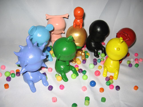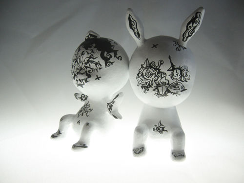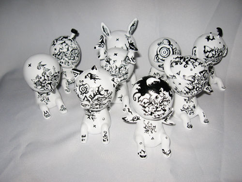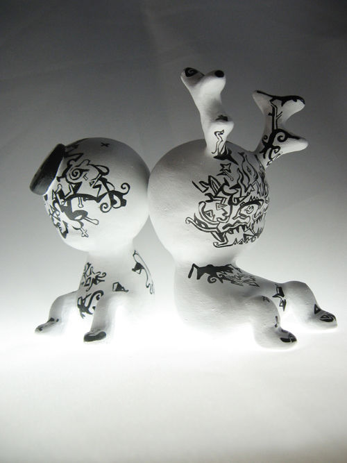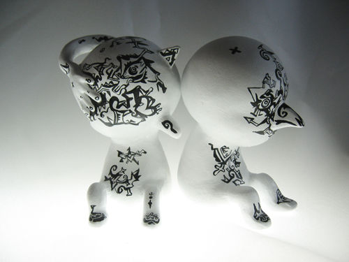 QRUWI是小不點(diǎn)的意思,EMBRYO寓意新生事物。“QRUWI EMBRYO”的創(chuàng)意來(lái)源于嬰兒,9個(gè)小瓷人實(shí)際是9個(gè)被高度概括的嬰兒形態(tài),沒(méi)有面部和上肢,每個(gè)小人的動(dòng)態(tài)和體形都非常接近,但有的有一對(duì)兔耳、有的有天使的翅膀、有的多出一只手來(lái),這些細(xì)微的差別又決定了它們之間的不同。