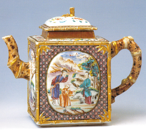 (廣州彩瓷方形茶壺)