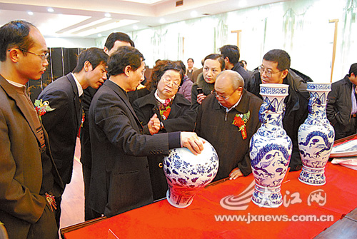 本報(bào)撫州訊 李俊、記者周文平攝影報(bào)道:身世神秘且存世稀少的元代青花瓷器,是我國(guó)陶瓷文化的一朵奇葩。27日,元代青花瓷器研究課題論證會(huì)在撫州舉行,30件元代青花瓷公開(kāi)亮相,吸引了首都博物館原館長(zhǎng)馬希桂、中國(guó)古陶瓷研究會(huì)副會(huì)長(zhǎng)、故宮博物院研究員李輝炳等全國(guó)10余位專(zhuān)家到來(lái)。