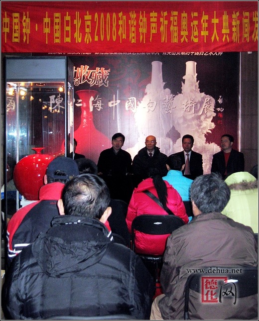 【德化網(wǎng) 訊】 記者從12月28日上午在北京大鐘寺古鐘博物館舉行的新聞發(fā)布會上了解到,“和諧鐘聲、祈福奧運(yùn)”中國鐘·中國白2008北京鳴鐘祈福奧運(yùn)年大典暨中國瓷都·德化陳仁海中國白藝術(shù)展即將于2008年元旦零點(diǎn)時刻舉行。