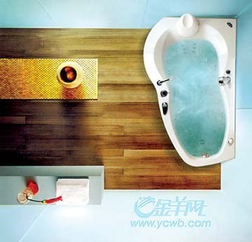 配件???提起浴室,人們首先想到的是瓷磚、面盆、浴缸、馬桶等,而一些營造浴室氣氛地小東西常常被忽略。比如,牙刷、口杯、皂盒組成的系列用品,比如防水作用的置衣籃、紙斤筒、化妝包等,別小看這些小玩藝兒,它們各自擔(dān)負(fù)自己的“使命”,為美化浴室可起著畫龍點睛的作用呢。
