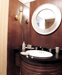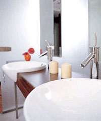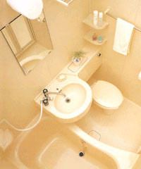 裝飾特點(diǎn):在極為窄小的空間里,可以實(shí)現(xiàn)最多功能。如果衛(wèi)生間很小,一般擺放浴缸是不可能的,但整體預(yù)制型衛(wèi)浴利用鑄模的優(yōu)勢解決了這個(gè)問題,浴缸在長度的限制下盡量做寬,盥洗池和馬桶為一個(gè)整體,這樣,水箱的位置可以做一個(gè)放置物品的臺面。