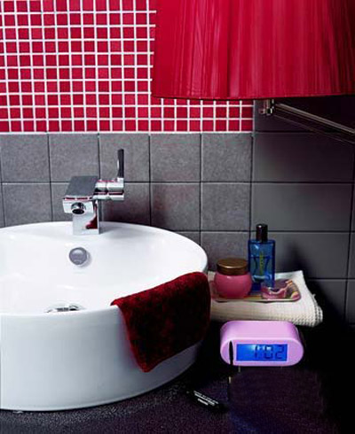 彩色地磚是突出的設(shè)計(jì),粉色、紅色與咖啡色自然過渡,穿插裝飾,整個(gè)色彩環(huán)境讓人感受到一種溫暖和舒爽,并搭配同色系的浴室配件,呈現(xiàn)出獨(dú)具魅力的女性氣質(zhì)。