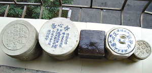 記者昨天在光叔家里看到了眾多大小不一的粗胚陶罐,它們普遍體形較大,最大的口徑達(dá)到近20厘米,像一個(gè)小菜缸。佛山老字號(hào)食品店“得心齋”的陶罐直徑約18厘米,高15厘米左右,呈灰白色,外觀非常精美,罐身還涂上了光滑的釉料,瓶蓋上面用藍(lán)色字體寫(xiě)著“著名得心齋”、“提防假冒”等字樣。