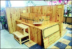 據(jù)了解,目前市場上的普通浴缸大多只有50多厘米高,除非躺在里面才能讓水浸泡全身,泡澡時(shí)的其他享受往往受到影響。木桶的深型設(shè)計(jì),可令沐浴者全身完全浸泡在水中,最淺的木桶也要68厘米,借助自然水力按摩身體,可以達(dá)到增強(qiáng)心肺功能,迅速消除疲勞的功效。
