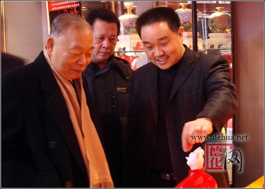 羅豪才副主席對生肖文化與中國白、中國紅相組合的“和諧一家”等系列表示了極大的興趣,他說,這個系列的作品構(gòu)思好、形象好,既有觀賞性,又具有時尚性和收藏性,作品把傳統(tǒng)造型與時尚元素巧妙的結(jié)合,很有創(chuàng)意。國防大學少將郁樹勝、嚴大鵬一同觀看了展覽。