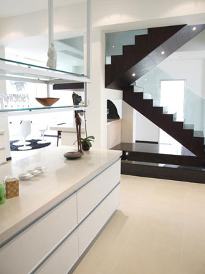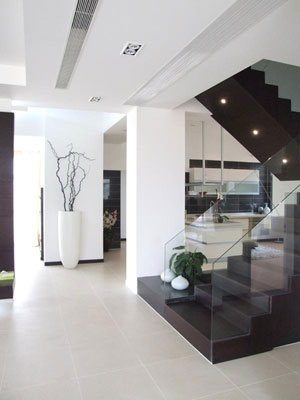 樓梯是一層空間的亮點(diǎn),錯(cuò)落折疊的黑色“風(fēng)琴”給白色簡(jiǎn)約的空間增添酷感,時(shí)尚崇拜呼之欲出。樓梯采用當(dāng)今米蘭最流行的設(shè)計(jì)元素??黑鋼板為主材,并實(shí)施鈦馬赫工藝,樓梯不但防震,防潮,外觀也更顯品位。玻璃扶手在滿足視覺效果的同時(shí),提高了安全保障。