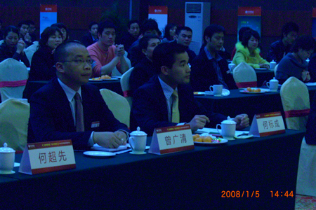 本次經(jīng)銷商年會的議程簡潔充實生動活潑。董事總經(jīng)理何標(biāo)成的歡迎詞,銷售總經(jīng)理張蜜敬的營銷總結(jié)報告,產(chǎn)品設(shè)計部經(jīng)理江印庚關(guān)于08年產(chǎn)品設(shè)計與開發(fā)方向的預(yù)告,生產(chǎn)部經(jīng)理李展賢關(guān)于08年生產(chǎn)及質(zhì)量控制的規(guī)劃,銷售副總經(jīng)理樂建文、顧錫朋對營銷工作的回顧與展望,總經(jīng)理助理何超先的08年專賣店建設(shè)及維護的計劃安排,優(yōu)秀經(jīng)銷商代表張鴻彬的經(jīng)驗介紹等等,均言簡意賅堪可回味,引人入勝更催人奮發(fā)。