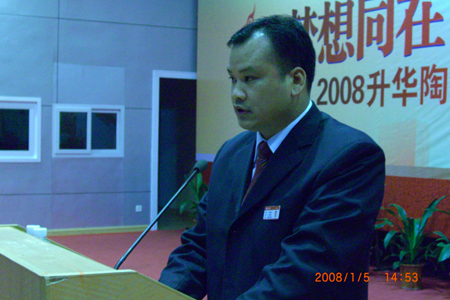 以“與夢想同在,與升華同行”為主題的2008升華陶瓷經(jīng)銷商年會,1月4到6日在珠海市五星級的國際會議中心大酒店隆重舉行。來自全國各地的升華陶瓷經(jīng)銷商和新聞記者等共200多人出席了這次精心組織的喜慶盛會,和升華企業(yè)一起回顧2007年的卓絕努力與非凡業(yè)績,滿懷信心地迎接2008年新一輪更好更快的發(fā)展。