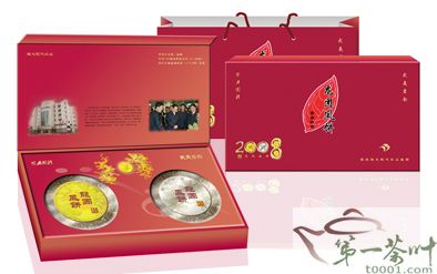 超大禮茶之企業(yè)紀(jì)念禮茶,精選武夷頂級(jí)巖茶,制成龍團(tuán)鳳餅金銀雙餅,以獨(dú)具特色的產(chǎn)品訴求“黃金的企業(yè)、白金的領(lǐng)袖”,為企業(yè)禮品、企業(yè)大事、新品上市紀(jì)念量身定做極具視覺沖擊力、震撼力的禮茶。包裝印有“2008”字樣(金、銀餅代表0,金幣正反面代表8),盒內(nèi)鑲嵌“茶為國禮”金幣(銅基貼純金),毛體大氣磅礴,金幣光彩奪目,更顯品味非凡。