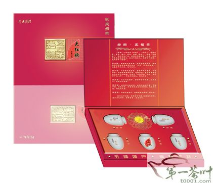 超大禮茶之巖韻·五福茶精選武夷頂級(jí)巖茶(大紅袍)配以德化名瓷,以五福臨門、富貴吉祥為產(chǎn)品訴求。精美的德化瓷裝極品大紅袍和武夷四大名樅:水金龜代表長壽,大紅袍代表富貴,肉桂代表康寧,鐵羅漢代表好德,水仙代表吉祥(善終);五福茶借五福臨門之意,與北京奧運(yùn)五福娃相呼應(yīng),融合傳統(tǒng)文化,把握時(shí)代脈搏,造就茶中“五福”。巖茶生于峭壁,巖韻巖骨花香,采天地之靈氣,集日月之精華,福壽富貴,亙古長存。