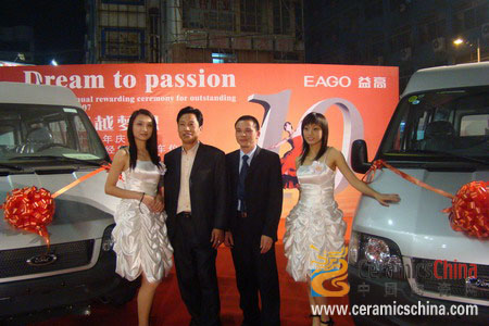 。ū揪W(wǎng)訊 主編 蘇振明 通訊員 劉繼勇 報(bào)道)對(duì)于益高衛(wèi)浴人來(lái)說(shuō),2008年1月8日是一個(gè)特別值得慶賀和紀(jì)念的日子,益高公司在三水西南影劇院隆重舉行十周年慶典活動(dòng),同時(shí)在三水花園酒店舉行了08年度經(jīng)銷商會(huì)議。在當(dāng)天的慶典晚宴上,益高衛(wèi)浴董事長(zhǎng)李鉅率全體管理人員,與出席激情超越夢(mèng)想經(jīng)銷商年會(huì)的幾百名經(jīng)銷商們一起舉杯,慶祝益高衛(wèi)浴成立十周年。晚宴后,一場(chǎng)精彩的慶益高衛(wèi)浴十周年晚會(huì)在西南影劇院上演,年度優(yōu)秀經(jīng)銷商獲得了益高衛(wèi)浴送出的大獎(jiǎng)----福特汽車五部。