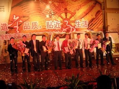 金舵是中國建陶行業(yè)中一個具有15年歷史沉淀的品牌,也是陶瓷行業(yè)首批“國家免檢”和“中國名牌”的品牌之一。不久前,金舵陶瓷被國家有關(guān)部門認(rèn)定為“中國馳名商標(biāo)”,為打造大眾知名品牌的戰(zhàn)略又邁出了堅實的一步。在多年的市場考驗中,金舵陶瓷培養(yǎng)了一大批實力強、品牌忠誠度高的經(jīng)銷商,他們依托金舵品牌,與金舵共同發(fā)展,不斷規(guī)范企業(yè)管理,擴大經(jīng)營,獲得了豐富的企業(yè)管理和市場運作經(jīng)驗。在會議上,北京、廣州、武漢、成都、西安等區(qū)域經(jīng)銷商被金舵企業(yè)授予“金舵陶瓷管理顧問”的榮譽稱號。