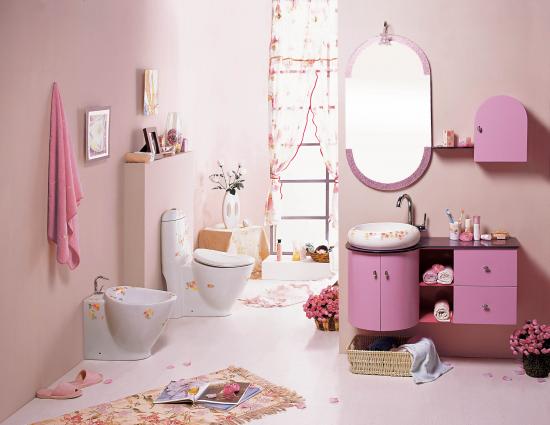 玫瑰花點(diǎn)綴潔具,整體以玫瑰色系為主,極有浪漫情調(diào)。