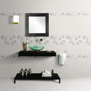 衛(wèi)浴的色調(diào)以黑白灰為主。墻面灰色的亞光瓷磚中間,因?yàn)橘N了一道西德石雕花墻磚,使單調(diào)的墻變得豐富起來,在整體視覺上讓人感覺很舒服。