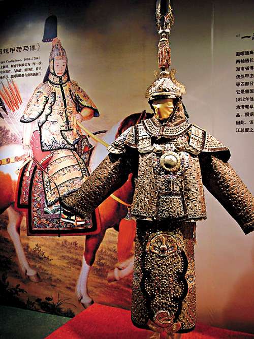 「一品當(dāng)朝」武官盔甲,是清朝湘軍統(tǒng)帥曾國藩一八六○年八月被清廷授予欽差大臣兩江總督后的戎裝禮服。