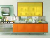 可以感到這是一個(gè)愉快的家,因?yàn)檫@些用色極其明快的廚具,有種賞心悅目的極至誘惑。