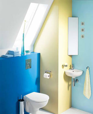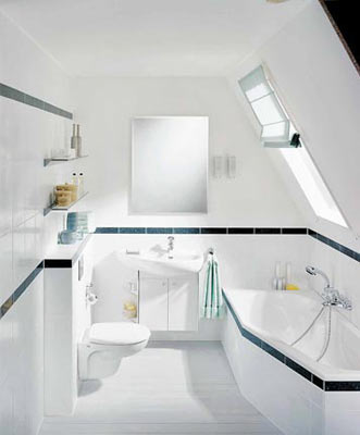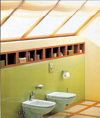 開闊型斜屋頂:空間足夠大,完全可以讓人站立活動,可以選擇掛墻式坐便器,墻面上可以設(shè)計一些收納格,用來存放衛(wèi)浴用品,增加了其空間的利用率。