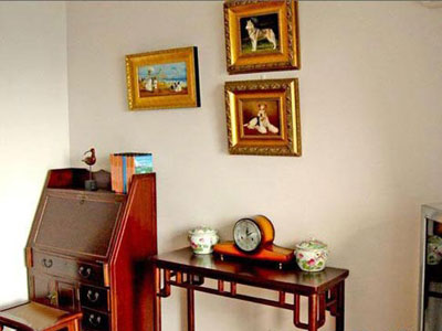 一個(gè)古色古香的柜子,幾幅簡(jiǎn)單的畫,將中式和田園巧妙地融合在一起。