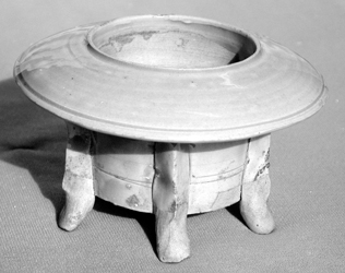 我以前曾將此類器物歸入油燈類,后經(jīng)研究發(fā)現(xiàn),如果是日常使用的油燈的話,內(nèi)胎應(yīng)該施釉的,否則油要滲透到胎里,會造成油料浪費,聰明的先人不會做出如此愚笨的事情。因此,我認定它是一種造型別致的香爐。后來,在耀州窯博物館,我看到這種類型的器物果然標(biāo)識為香爐。