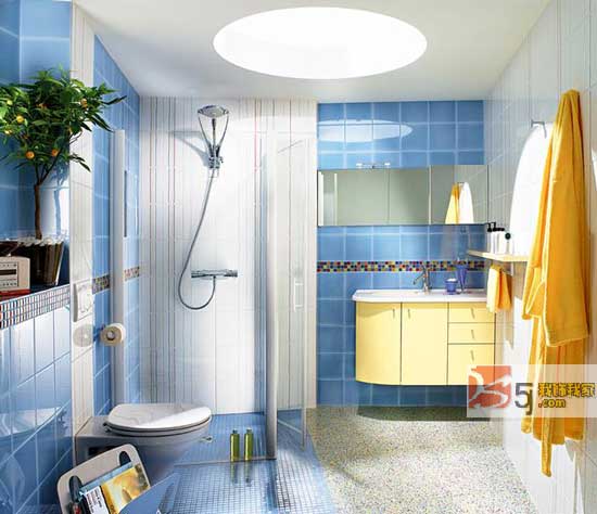 藍(lán)色是比較中性的顏色,在夏天讓人感覺清涼,在秋冬也不會讓人感覺冰冷,在浴室里適當(dāng) 的添加藍(lán)色元素,會給人帶來身心自由的快樂感覺。