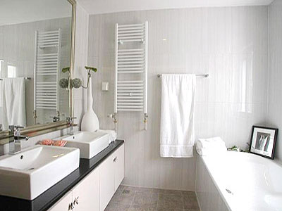 極度簡(jiǎn)約的衛(wèi)浴室內(nèi)設(shè)計(jì),浴池與洗手臺(tái)的空間運(yùn)用的十分合理。