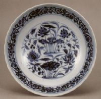 說(shuō) 明: 內(nèi)外繪青花,內(nèi)口沿繪卷草紋一周,內(nèi)心繪蓮池紋。