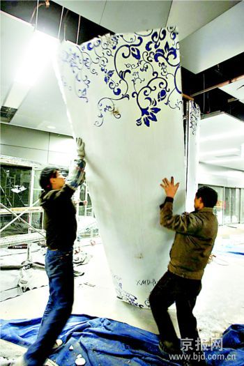 “主題靈感來自于藝術(shù)與空間相結(jié)合,又同周邊的古城墻遺址相協(xié)調(diào)。我們把青花瓷花瓶上的圖案元素提取下來,重新設(shè)計了新的花型圖案。但具體實施時遇到了些困難,因為國內(nèi)從來沒有過3米高的整體搪瓷鋼板,分割成片表現(xiàn)會打破青花瓷圖案的美感,最后我們還是堅持讓專業(yè)人士去研究燒制,才有了如今這么高大的青花瓷柱子。”一位設(shè)計師告訴記者:“過些日子,還要給這個站廳設(shè)計一面仿古的灰色藝術(shù)墻。”