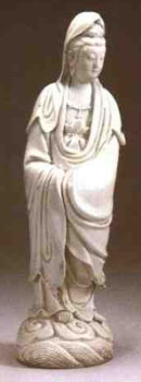 用瓷器的原料和燒制工藝做出的雕塑藝術(shù)品,也包括實(shí)用瓷器上附加的裝飾雕塑。瓷塑成型有的用瓷泥捏塑,有的用范模將泥料擠壓成型,近代還有用石膏范注漿成型的。瓷器發(fā)明以后,開始都是生產(chǎn)滿足日常生活需要的實(shí)用器物,如碗、盤、杯、瓶、罐等。隨著工藝的成熟,逐漸做出一些滿足人們意識(shí)形態(tài)需要的雕塑藝術(shù)品和陳設(shè)品。如東漢時(shí)的瓷燈、燈座塑成人物形象,身上還爬滿偷油的老鼠。三國兩晉南北朝時(shí)期的青瓷谷倉罐,在一個(gè)瓷罐上塑出亭臺(tái)樓閣、長廊列舍等多層建筑,上面有持械守衛(wèi)的人物,有披麻戴孝作道場的送葬場面,庭園正中立看刻寫年號(hào)和吉祥頌詞的碑碣、周圍還環(huán)繞著各種鳥獸。羊形器、牛形燈等也是以雕塑為豐的實(shí)用器具。西晉瓷塑有神獸尊、仙人騎獅、持械的部族武裝、對(duì)坐的文人學(xué)士、各類動(dòng)物、雞籠狗舍模型、蛙形水孟等。隋、唐時(shí)期用雕塑手法或用陶范成型作出瓷俑,如鎮(zhèn)墓獸、文吏武官、男仆女侍、明駝駿馬、獅子,以及童于騎獸等玩具。宋、元、明、清時(shí)代的瓷塑包括瓷枕上塑出的人物、動(dòng)物形象,還有童子拜觀音、神仙故事、觀音、達(dá)摩等。有的瓷塑還加彩飾,這些瓷塑是中國雕塑藝術(shù)的重要組成部分。在中國陶瓷史上出現(xiàn)許多杰出的工匠,大多數(shù)沒有留下姓名。見于文獻(xiàn)記載的有宋吉州窯的舒翁、舒嬌,明末清初福建德化窯的何朝宗、張壽山、林朝景,清代景德鎮(zhèn)的六十四等人。其中何朝宗、張壽山、林朝景等人雕塑的白瓷觀音、達(dá)摩形象,亨譽(yù)海內(nèi)外,被譽(yù)為東方藝術(shù)的明珠。(見下圖)